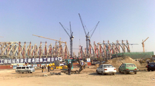 天津西站擁有亞洲最大的站臺規(guī)模。天津西站地區(qū)將規(guī)劃為天津市鐵路、公共交通綜合樞紐和城市的商業(yè)、商務(wù)副中心。天津西站的改造擴建工程,將進一步體現(xiàn)了天津現(xiàn)代化國際都市特色。而中昇公司的塔機在這個現(xiàn)代化大都市的建設(shè)中,獻出了亮麗的一筆!