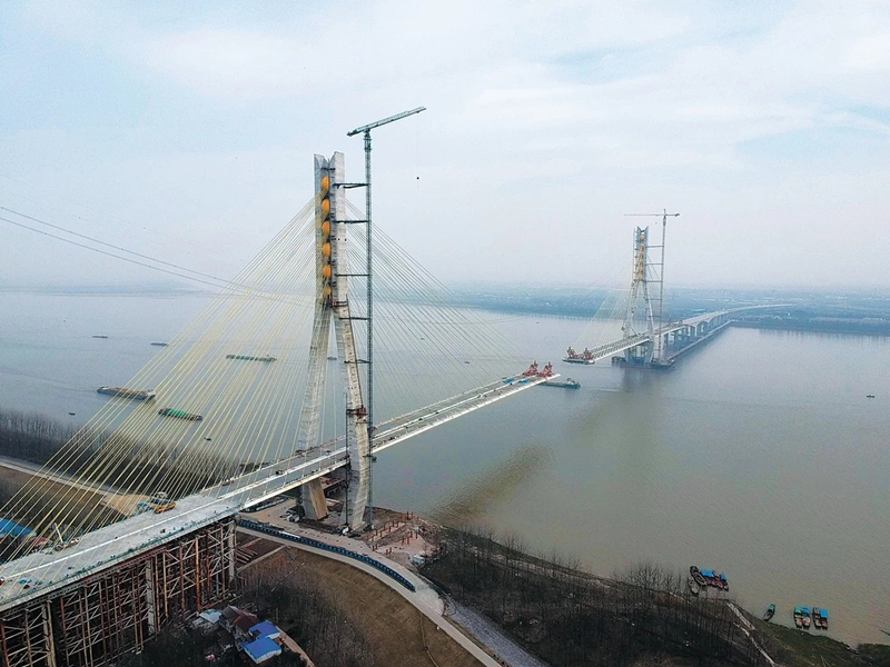 池州長江公路大橋是安徽省“四縱四橫”高速公路網(wǎng)規(guī)劃中“縱三”濟南至祁門高速公路跨越長江的關(guān)鍵性工程。長江主通航孔橋即跨江主橋全長1448m,采用登高塔混合梁雙塔斜拉橋方案。