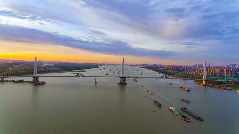 大橋主橋?yàn)檩p型鋼混結(jié)構(gòu)斜拉橋,線路全長10.3千米,橋梁總長4.4千米,主橋長1796米,南北主跨長1200米;橋面為雙向六車道城市主干道,設(shè)計(jì)速度100千米/小時(shí)。大橋整體分為橋梁段、路基段和隧道段三部分,橋梁段由北至南分別由北引橋、北主橋、南主橋、南引橋四個(gè)部分組成。