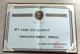 中昇建機(jī)被中國工程機(jī)械工業(yè)協(xié)會檢測技術(shù)工作委員會授予2013年度“優(yōu)秀會員單位”榮譽(yù)稱號