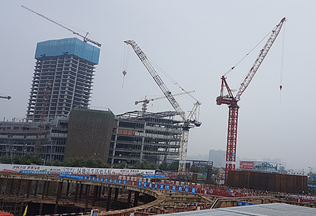 施工高度468米,采用中昇建機(jī)ZSL1250(64T),ZSL1150(64T)及ZSL750(50T)各一臺(tái)。