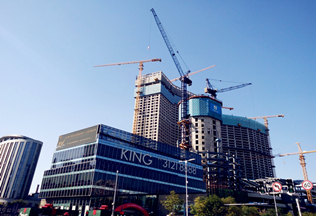 建筑高度380米,采用中昇建機(jī)ZSL3200(100T)及ZSL750(50T)各一臺(tái)。