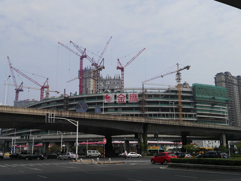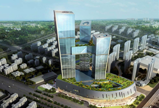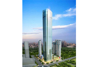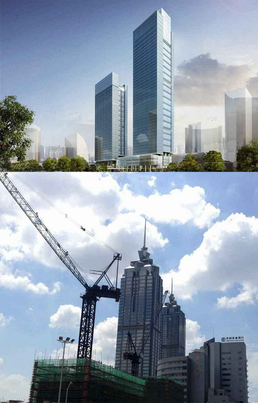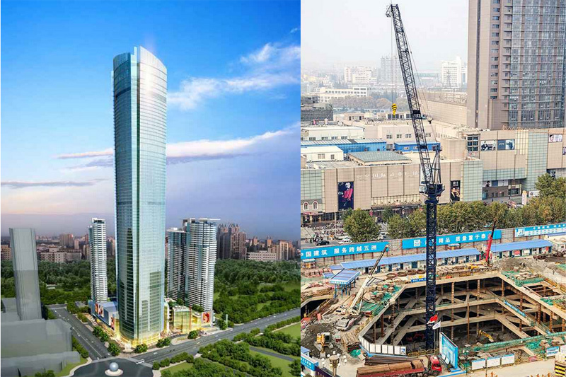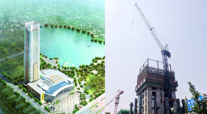 大樓高度208米,采用中昇建機ZSL1000一臺(最大吊重64t)和ZSL750一臺(最大吊重50t)。