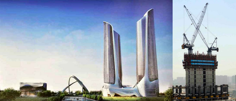 施工高度323米,采用中昇建機ZSL500兩臺(最大吊重32t)