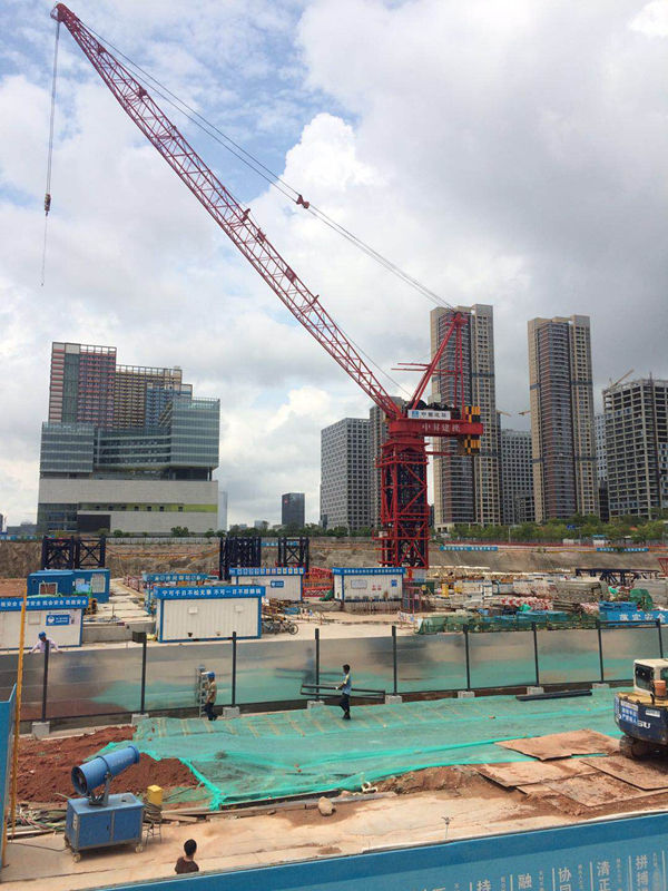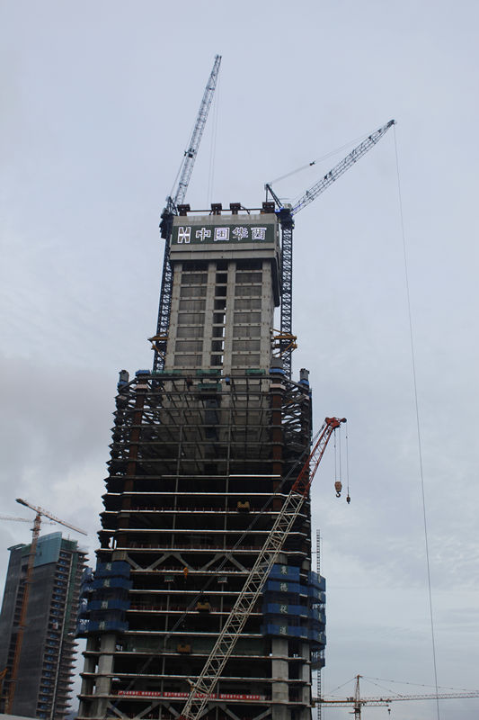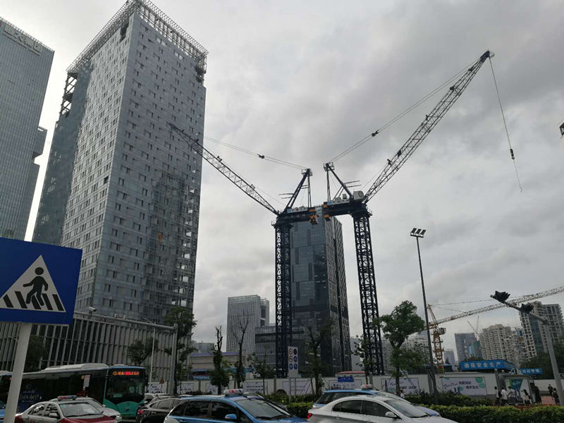 施工高度428米,采用中昇建機(jī)ZSL850(50t)、ZSL750(50t)、和ZSL380(32t)各一臺(tái)。