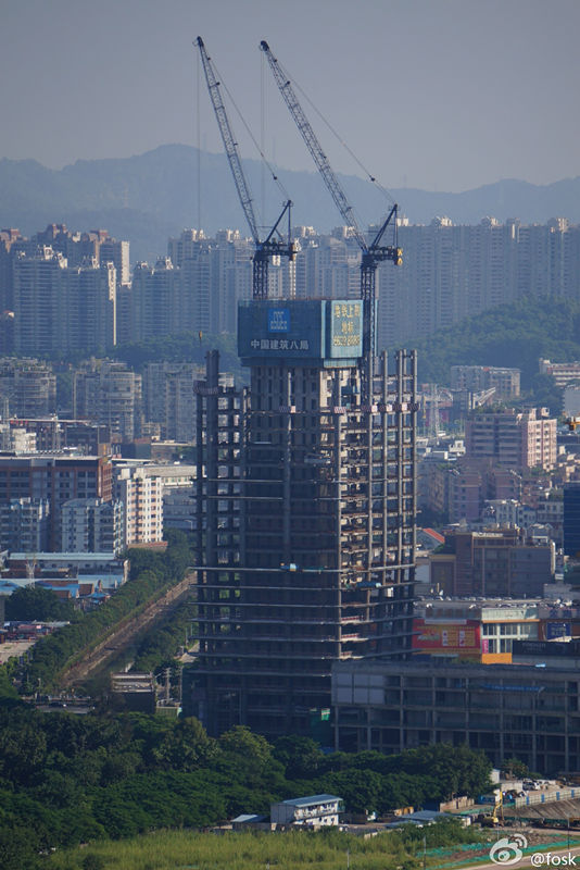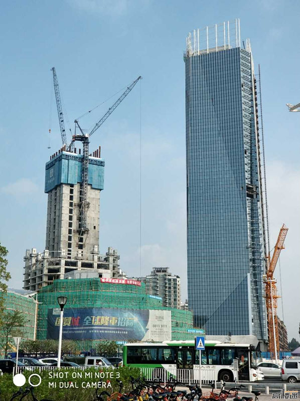 施工高度317.6米,采用中昇建機(jī)兩臺(tái)ZSL750(最大吊重50t)