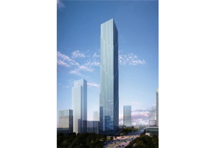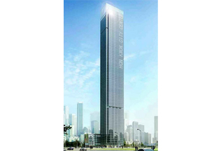 建筑高度306米,采用中昇建機內爬動臂式塔機ZSL500(32t)