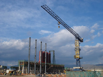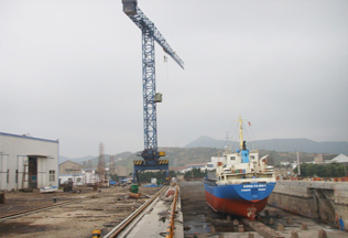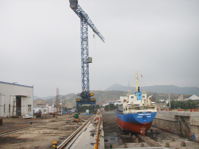 采購兩臺中昇建機(jī)門式行走塔式起重機(jī)ZSC28300、ZSC26300,立于船塢旁用于船舶的生產(chǎn)和維修。